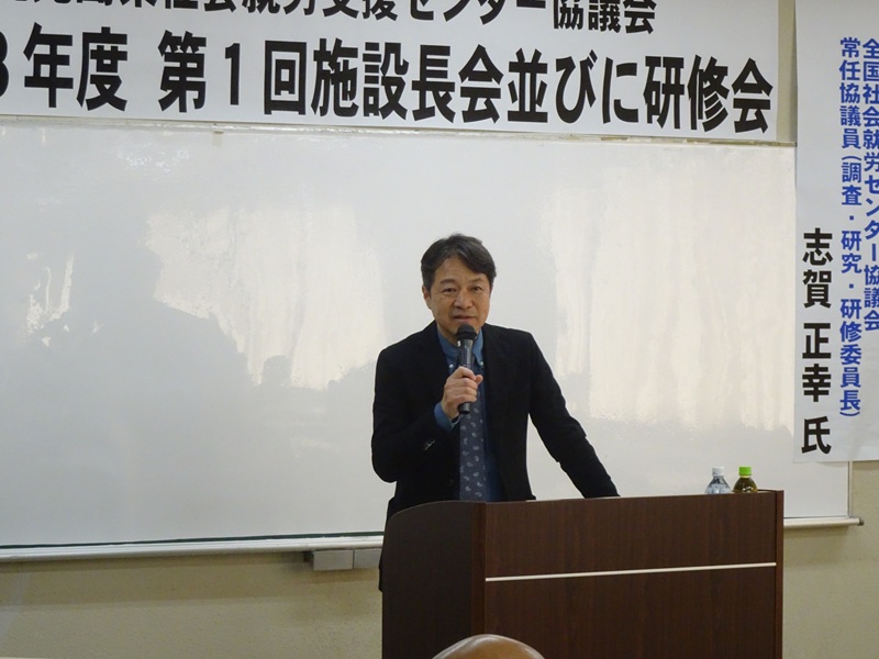 全国社会就労センター協議会常任協議員で,調査・研究・研修委員長の志賀 正幸氏を講師に迎え,「令和8年度障害福祉サービス等臨時報酬改定並びに令和9年度報酬改定等について」と題して御講義いただきました。
