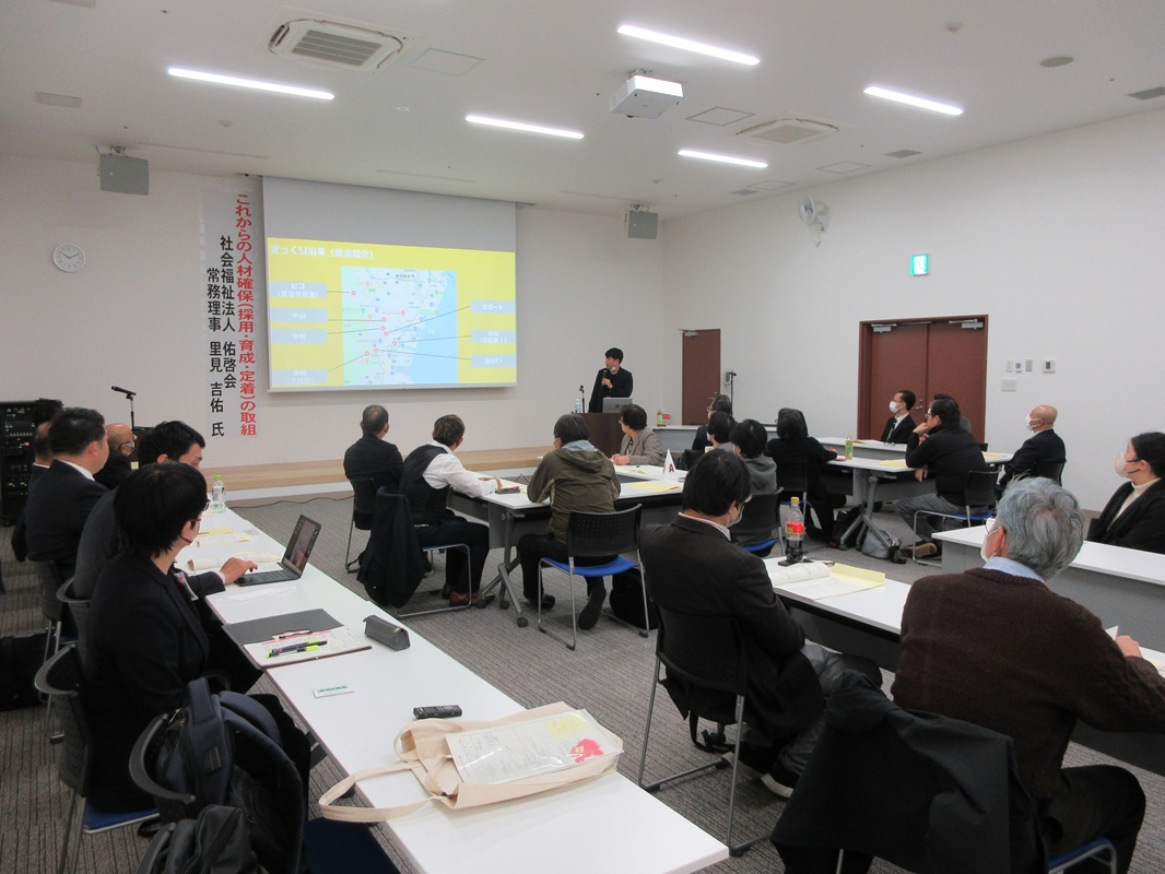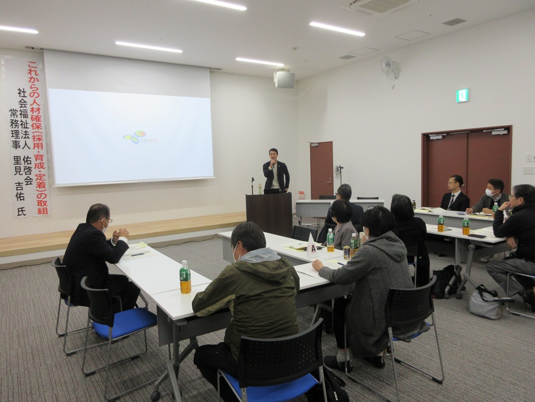 午後からは、La Plus9階のミーティングルームにおいて、社会福祉法人佑啓会常務理事の里見 吉佑氏を講師に迎え、「これからの人材確保(採用・育成・定着)の取組」と題して、ご講演いただきました。